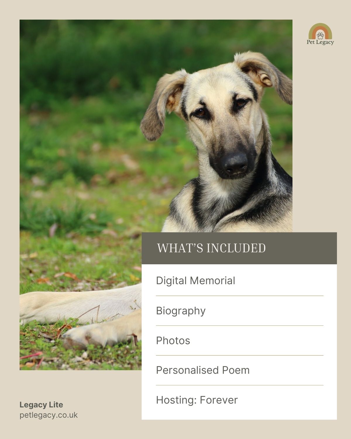 Legacy Lite is a simple, affordable online memorial created on a trusted third-party platform. Hosting is included for life at no extra cost. You’ll receive access so you can keep editing, add more photos or text, and control privacy settings — keep the page private, share with family, or make it public.